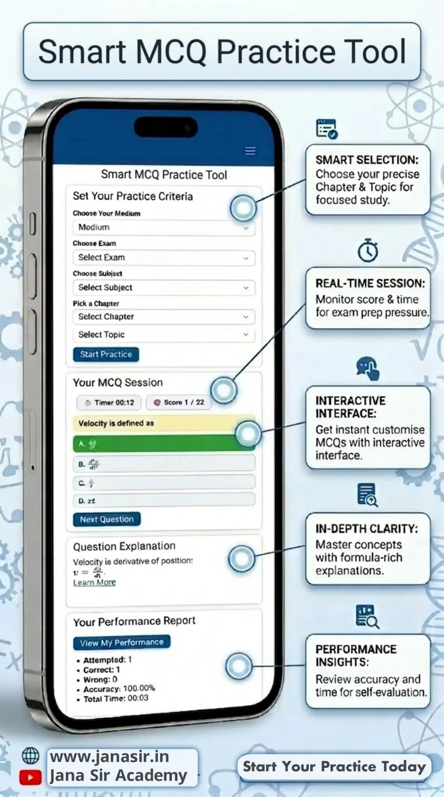 Tools Access For MCQ Practice Login with correct details. For issues, contact Jana Sir Go to Premium MCQ